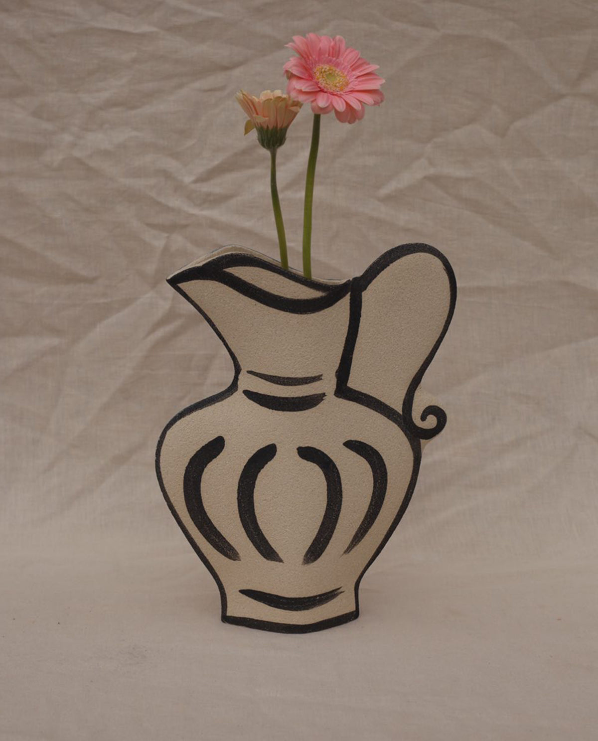 Crafted by our designer, the black underglazes are meticulously applied by hand before the initial firing, infusing the vase with a touch reminiscent of antiquity. After a second firing at 1250°C, a transparent glaze is added to the interior for a refined finish, ensuring lasting durability.