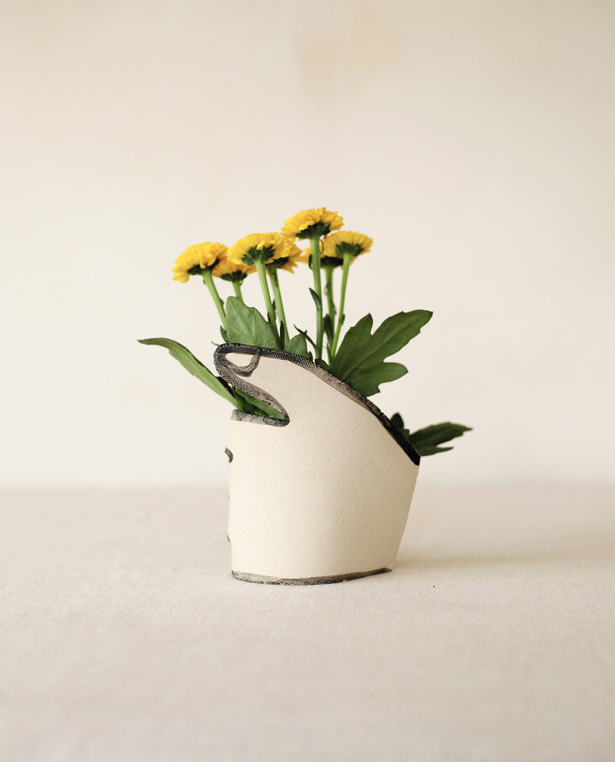 Each piece is entirely handmade by our designer using chamotte stoneware, with black underglaze illustrations applied before the initial firing.