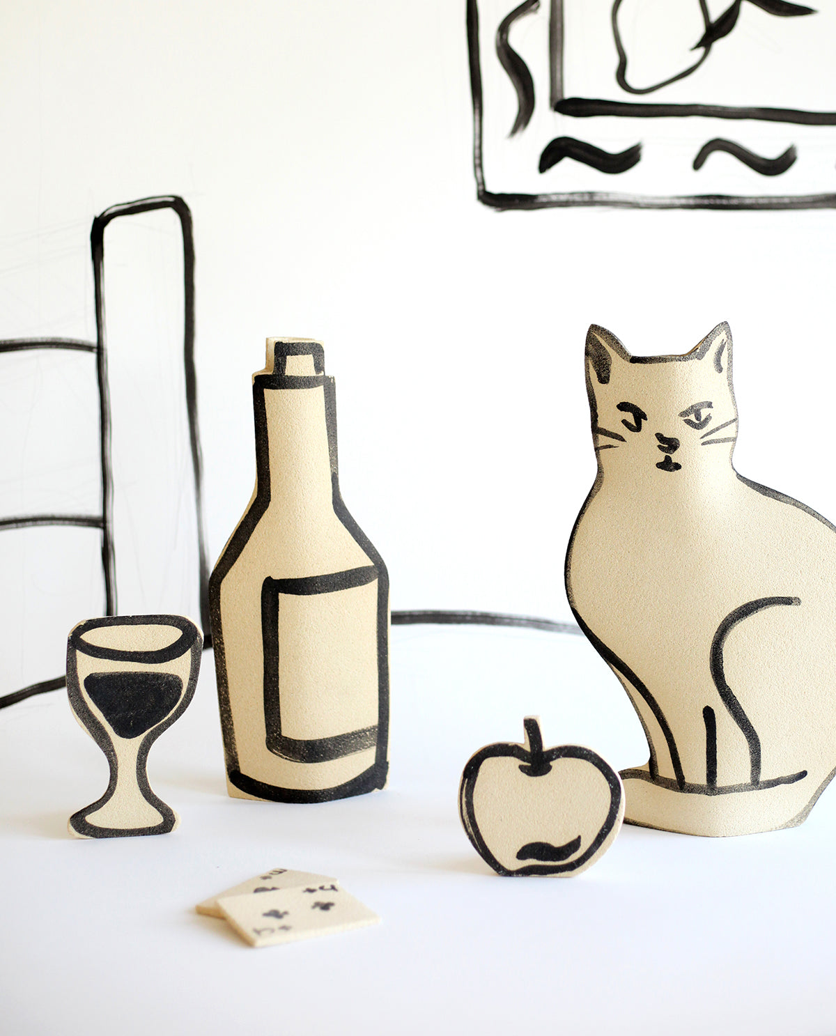 Each piece is entirely handmade by our designer using chamotte stoneware, with black underglaze illustrations applied before the initial firing.